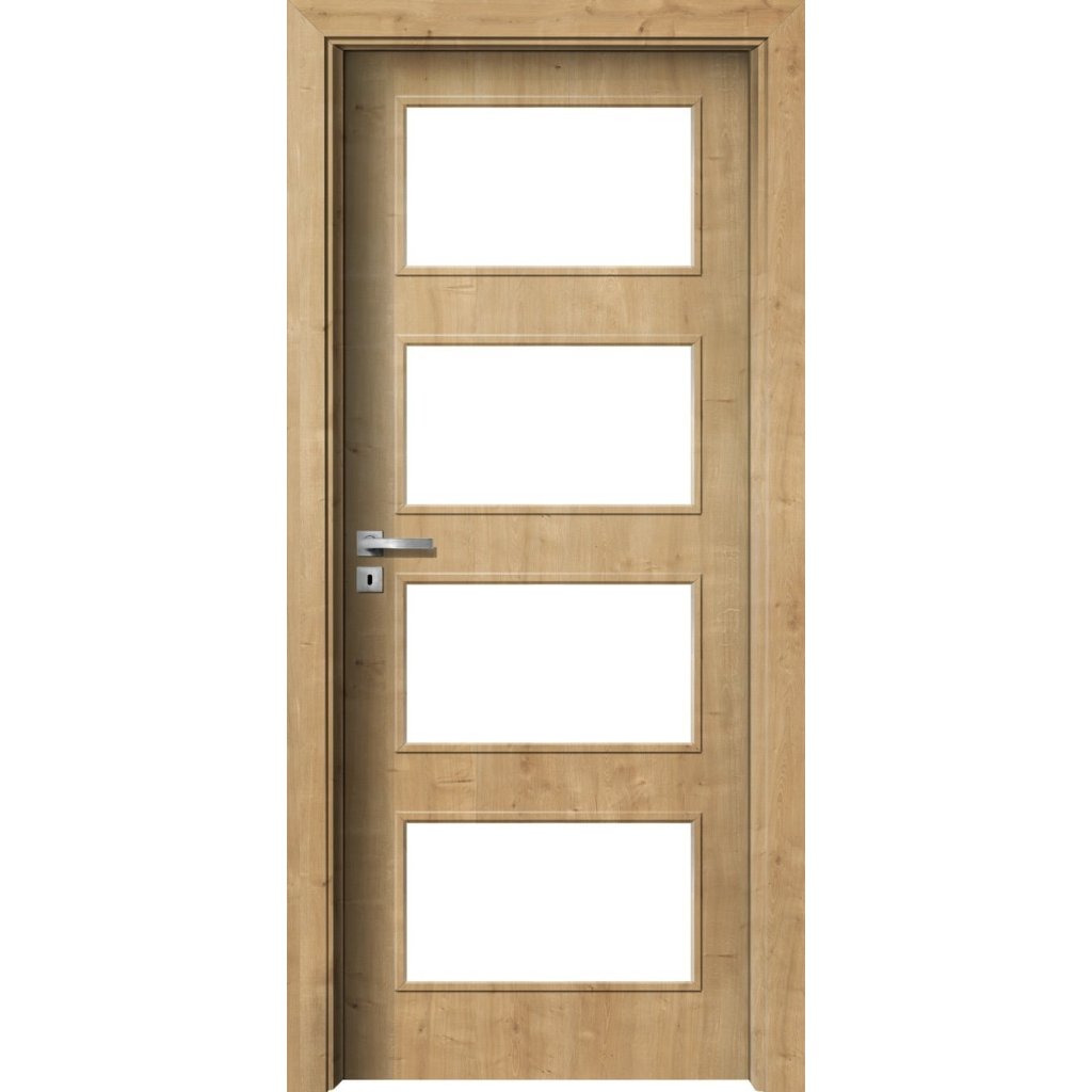 Model dverí s charakteristickým obdĺžnikovým presklením. Zasklenie je realizované pomocou rôznych ornamentných skiel podľa aktuálnej ponuky, prípadne plnou kazetou v zhodnom dezéne dverí. Sklo a plnú kazetu je možné ľubovoľne kombinovať a zvoliť si tak mieru presklenia, ktorá Vám vyhovuje. Tento model dverí je vhodný do interiéru, kde je žiadané ich presvetlenie a nadčasový dizajn.