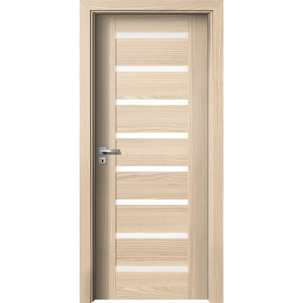 Model dverí v modernom a elegantnom dizajne bez zasklievacích líšt s vloženými úzkymi pásmi skla. Tento model dverí s kompaktným vzhľadom je vhodný do každého moderného interiéru, u ktorého je kladený dôraz na jeho celkový dizajn.