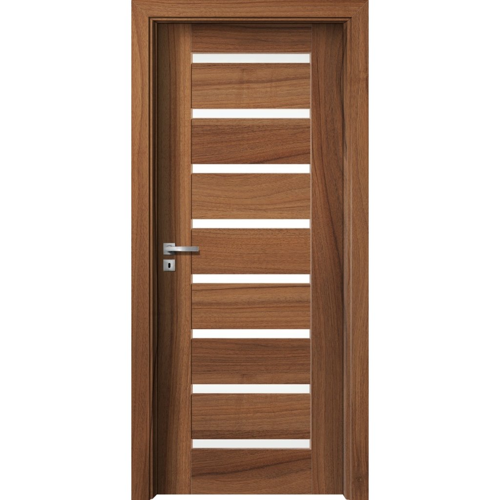 Model dverí v modernom a elegantnom dizajne bez zasklievacích líšt s vloženými úzkymi pásmi skla. Tento model dverí s kompaktným vzhľadom je vhodný do každého moderného interiéru, u ktorého je kladený dôraz na jeho celkový dizajn.