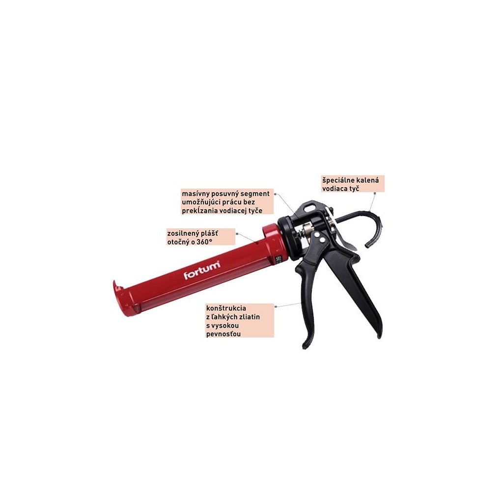 Pištoľ na tmel Fortum poloskeletová kovová otočná 229 mm na 310 ml kartuše (4770820)