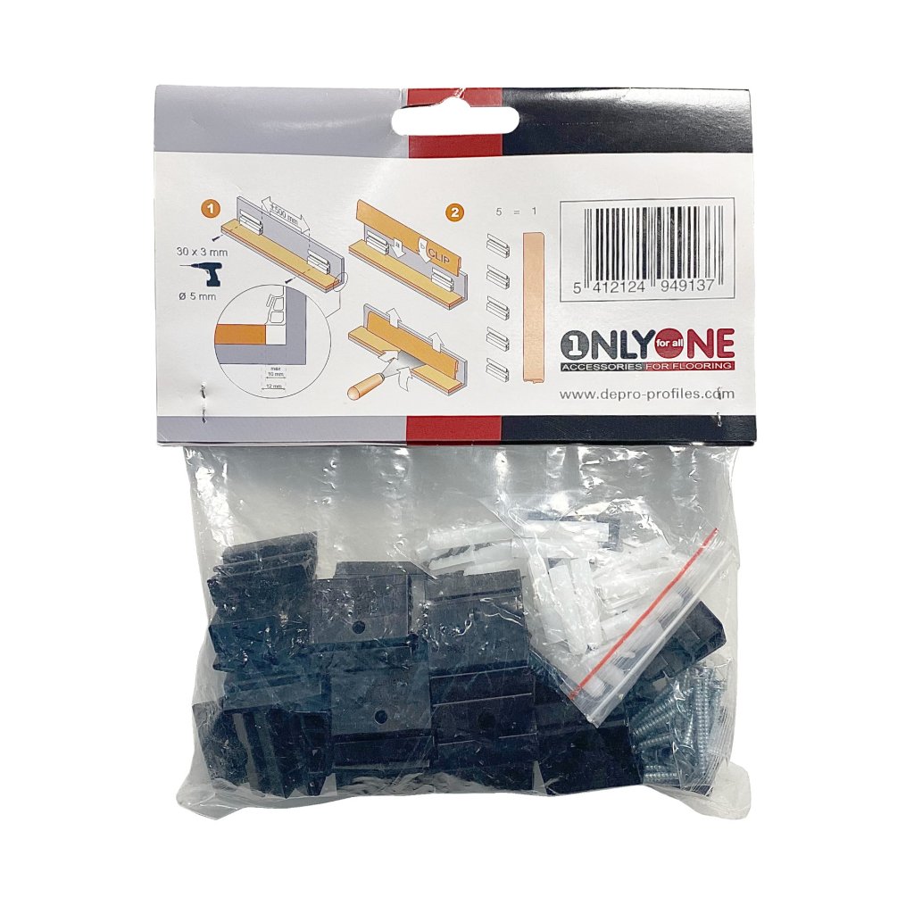 Úchyt na soklové lišty Gerflor MDF, Fix&Clic plastový (30 ks/bal + skrutky + hmoždinky)